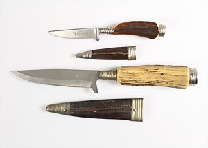 Lot: 2 Jagdnickerl, 1 x "Tropon" 13,5 cm u. 1 x "Solingen" 20,8 cm, beide mit Geweihgriffen