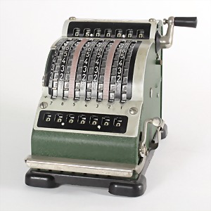 Kleine ADDIERMASCHIENE, "Resulta 7", West-Berliner Erzeugnis von 1964, ca. 9,5 x 15 x H = 11 cm, funktioniert !