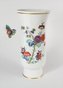 Vase, Meissen um 1800, sig.: Nr 630 c 3., sehr feingemaltes buntes Blumendecor, gegenüberliegend ein Schmetterling, oben u. unten mit Goldrand abgesetzt, H = 23,5 cm, D = 11,5 cm,