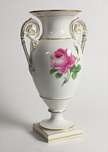 Vase Meissen, Mitte 20.Jhd., "AMPHORE", Wildrosenmotiv, Goldbemalung, H = 23,5 cm, ll Wahl !