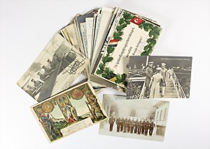 53 Postkarten (Feldpostkarten), vorwiegend Militärszenen u. Stadtansichten, guter Erhaltungszustand !