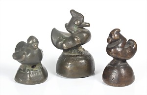 3 Opiumgewichte "HÜHNCHEN", Burma 18/19.Jhd., 148 g, 157 g u. 319 g, H = 4,5 - 6,3 cm