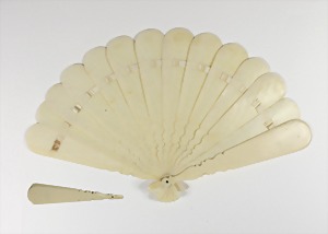 Alter Elfenbeinfächer Anfang 20.Jhd., L = 18 cm, am Ansatz mit Fehlstellen !