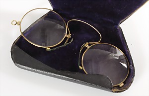 Kneifer mit Originaletui, Innen mit Samt ausgeschlagen, Etui ca. 11,5 x 65 mm, RV: … Akermann, Diplom-Optiker, Reutlingen