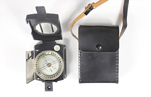 Marschkompass 1970er Jahre, schwarzes gehäuse, Originaletui mit Riehmen, guter Zustand !