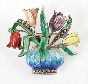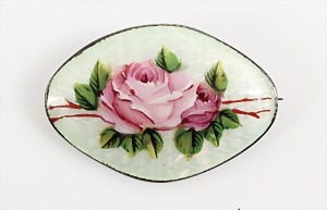 Brosche, "ROSE" um 1910, Silber 900/000, transluzides Emaille, gouilllochiert, 41,2 x 28 mm