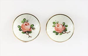 1 Paar Ohrclips, "ROSE", Norwegen Mitte 19.Jhd., Silber 925/000 (vergoldet), sig.: NORWAY, transluzides Emaille, gouilllochiert, D = 21 mm
