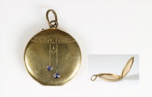 Anhänger als "MEDAILLON" gearbeitet, Anfang 20.Jhd., GG 585/000, 2 Saphire (facettiert), D = 27,5 mm