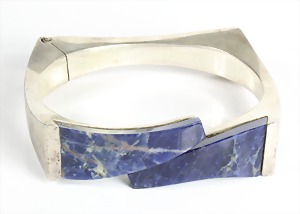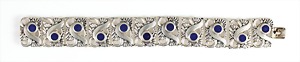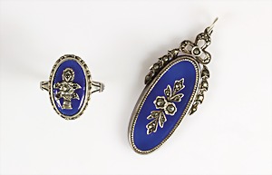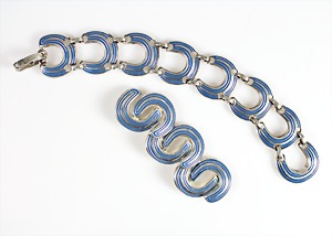 Lot: "Fa. GROSSE" Pforzheim, Silber 925/000, sig.: Grosse 71 Pforzheim, 1 Armband, blauer Emaille-Lack, Klappschließe, L = 20,0 cm; 1 Anhänger, blauer Emaille-Lack, H = 82,5 mm