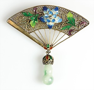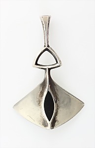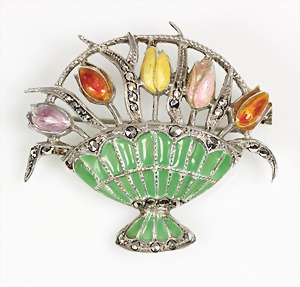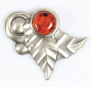 Kleider-Clip 1950er Jahre, "WMF-IKORA", Metall: versilbert, Glascabochon, ca. 48 x 41 mm