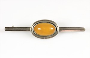 Brosche 1930/40er Jahre, Bernstein "BUTTERSCOTCH", Silber 900/000, L = 60 mm