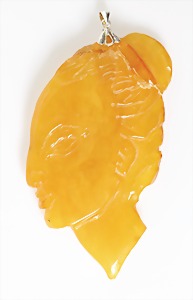 Anhänger "FRAUENKOPF", Bernstein "BUTTERSCOTCH", Silber 925/000, ca 94 x 45,5 mm, total 21,4 g,