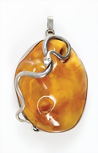Anhänger, Bernstein "BUTTERSCOTCH", Silber 925/000 oder 935/000 ?, über den Bernstein schlängelt sich eine Schlange, H = 62,5 mm, total 22,8 g,