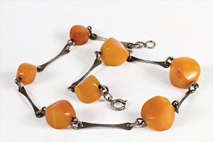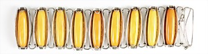 Armband, Bernstein "BUTTERSCOTCH", Silber 835/000, sig.: Fischland, 9 Stck. länglich geschliffene Bernsteine, B = 45,3 cm, total 66,7 g