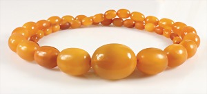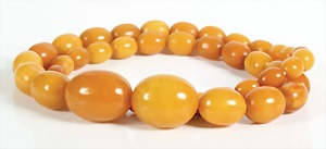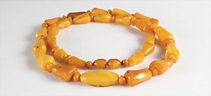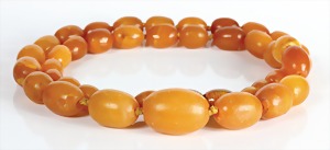 Bernsteinkette, "BUTTERSCOTCH", Oliven D = 6,5 x 13,1 mm, vordere Olive 18,6 x 13,1 mm, L = 51 cm, Schließe später !, total 20,3 g