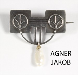 Brosche, JUGENDSTIL um 1900/10, Silber 900/000, sig.: AG (AGNER JAKOB, MÜNCHEN ?), Stempel undeutlich ! Naturperle, ca. 32,7 x 32 mm, schöner Jugendstil !