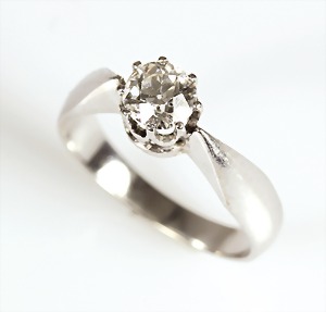 Brillant-Ring, WG 585/000, Altschliff-Diamant ca. 0,55 ct tw/w-si/p, RW ca. 53,5