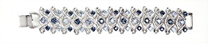 Armband von "CORO" USA, weißfarben, sig.: Coro, gewölbtes Band üppig besetzt mit hell- u. dunkelblauen Strasssteinen, Klapp-Schließe, L = 18,5 cm