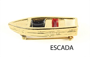 Brosche "BOOT" von "ESCADA", goldfarben, sig.: ESCADA, schwarz, weiß u. rotes Emaille, ca. 50,2 x 20 mm