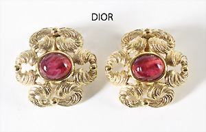 Ohrclips von "DIOR", goldfarben, sig.: Chr. Dior GERMANY, orangefarbener Glascabochon, ca. D = 33 mm