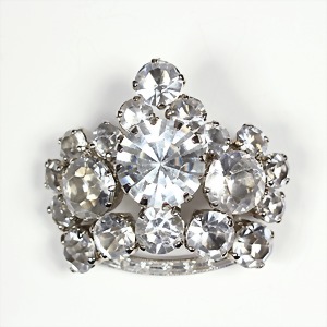 Brosche "KRONE", USA 1950/60er Jahre, weißfarben, signiert: WEISS; große u. kleine weiße Strasssteine, ca. 45 x 40,2 mm