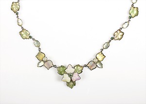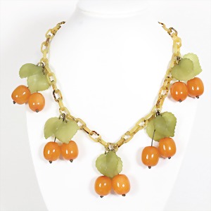 Dekoratives Collier "VINTAGE" aus den 1930/40er Jahren, Blätter mit Früchten an Metallstilen, L = 48 cm