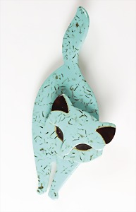 Brosche, "Fuchs Pin" von Lea Stein, sig: LEA STEIN PARIS, aus laminiertem Cellulose-Acetat (türkis/schwarz), Broschierung: Metall, sehr guter Zustand, L = 99,5 mm, Lea Stein wurde stark vom ART-DECO beeinflußt