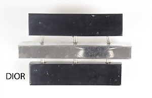 Brosche "DIOR", sig.: 1970 Chr. Dior GERMANY, Metall weißfarben, schwarzer Kunststoff, ca. 59 x 38 mm