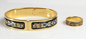 Lot: Schmuck von "FREY WILLE", Armreif mit farbigen Emailleeinlagen; B = 12,3 mm, innen ca. 58,8 x 48 mm, sig.: FREY WILLE; passender Ring, sig.: FW, RW ca. 54,5