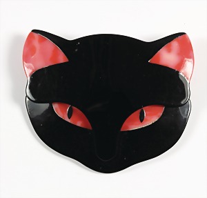 Brosche, "Katzenkopf" von Lea Stein, sig: LEA STEIN PARIS, aus laminiertem Cellulose-Acetat (schwarz/rot), Broschierung: Metall, sehr guter Zustand, ca. 58 x 51 mm, Lea Stein wurde stark vom ART-DECO beeinflußt !