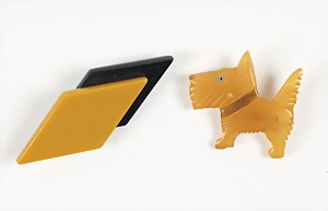 Zwei Broschen (Bakelit), "ART-DECO" aus den 1920/30er Jahren, Hund ca. 40 x 36 mm