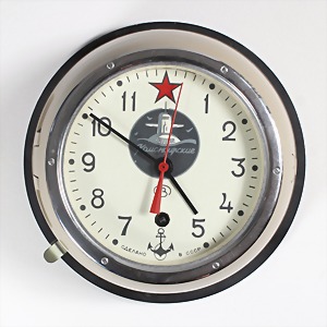 U-Boot Wanduhr, "SLAVA", Russland 90er Jahre,8 Tagewerk, Zentralsek., D = ca. 21 cm, Halteplatte (23 cm) u. 2 Schlüßel, Uhr läuft !