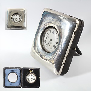 Herrentaschenuhr, Silber 925/000, Emailleziffernblatt, röm. Index, kl. Sek. Auf 6 Uhr, Uhr läuft; Taschenuhrenschatulle, England, "BIRMINGHAM" 1921/22, Silber 925/000, innen mit Samt u. Stoff ausgeschlagen, ca. 95 x 86 x 29 mm, Schatulle mit Ständer zum aufstellen !