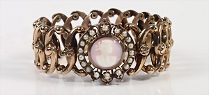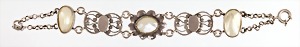 Armband um 1830, Silber, 3 Muschel-Perlen, die einzelnen Elemente sind mit Ösen verbunden u. laufen in einer doppelreihigen Erbs-Kette aus, L = 18,5 cm