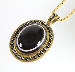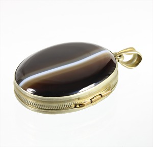 Anhänger/Medaillon, Metall, beidseitig eingefasster Achat (SAAT-Achat), H = 45,7 mm