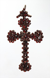 Anhänger "KREUZ" um 1860/70, Metall, Böhmische Granate, H = 6,3 cm