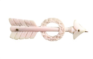 Ansteck-Nadel "PFEIL" um 1860/80, Nadel (hinten) gg 585/000, gravierte Muschel in zartem Rosa, (Pfeil u. Kranz graviert), L = 53,2 mm