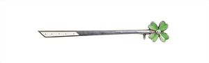 Nadel "KLEEBLATT", "JUGENDSTIL" um 1900/10, Silber 900/000, signiert, 900 DEPOSE, (Herrmann Carl, Pforzheim), Emaille, transluzides grün, opakes weiß mit kl. Feingoldpunkten, kl. Flußperle, L = 7,5 cm