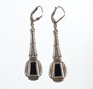 Ohrhänger "ART-DECO" der 1920/30er Jahre, Silber 835/00, Onyx, H = 55 mm, Ohrmechaniken mit Klappbügel