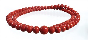 Korallen-Kette, Goldschließe GG 333/000, Sardegna-Koralle, D = 5,2 - 9,9 mm, L = 51,5 cm, total 29,1 g, schöne Qualität !