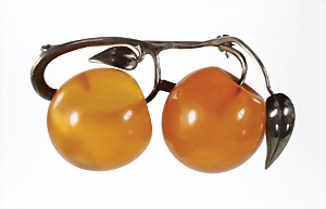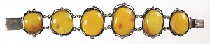 Brosche "ART-DECO", Bernstein "BUTTERSCOTCH", Metallbroschierung, Maße: ca.52,7 x 32,2 mm, total 19,0 g