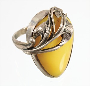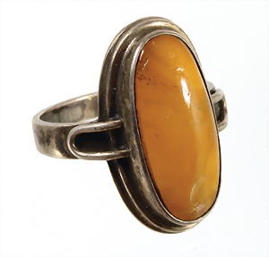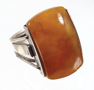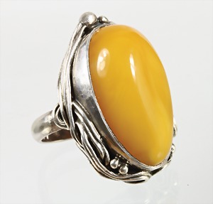 Ring, Bernstein "BUTTERSCOTCH", Silber (geprüft), sig.: R/J, Ringkopf ca. 32,0 x 22,0 mm, RW ca. 53, total 13,2 g