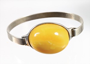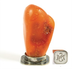 Petschaft, Bernstein "BUTTERSCOTCH", Silber (geprüft), Initialen: SM bzw. MS, H = 48,6 mm, total 19,1 g