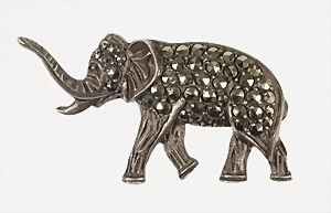 Brosche "ELEFANT", "ART-DEKO 1930/40er Jahre, Silber 835/000, Markasiten, plastisch ausgearbeitet, ca. 35,3 x 20,0 mm