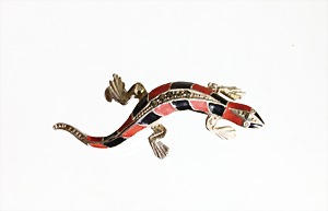 Brosche, "EIDECHSE", ART-DECO der 1930/40er Jahre, Silber 835/000, sig: TH…, Körper mit farbigem Emaille (restauriert) u. Markasiten, plastisch ausgearbeitet, L = 41,3 mm, sehr ausgefallen !