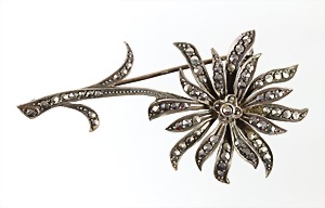 Brosche 1950er Jahre, "BLUME", Silber 935/000, L = 56,4 mm
