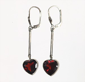 1 Paar Ohrhänger, "HERZEN", Silber 835/000, Granate fac., in Herzform geschliffen, H = 46,0 mm