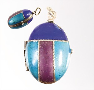 kleines Medaillon, "SKARABÄUS" 1.Hälfte 20.Jhd., Silber 835/000, beidseitig emailliert, H = ca. 29,0 mm