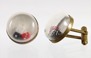 1 Paar Manschettenknöpfe, "WÜRFEL", "ART-DECO" 1939/40er Jahre, je 3 Würfel unter einer Kunststoffkuppel, D = 22,2 mm