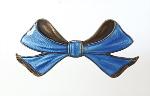 Brosche "SCHLEIFE", Norwegen der 1940/50er Jahre, "DAVID ANDERSON", Silber 925/000, transluzides blaues Emaille, L = ca. 41 mm
